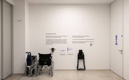 Our access station, located next to the lift on the ground floor, includes large print wall texts, a gallery map, ear defenders, stools and wheelchairs to make your visit to the gallery more accessible.