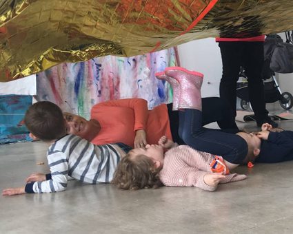 Six workshops were lead by artist Judith Brocklehurst and supported by Tina Little and Taylor Walters, playworkers from Thanet Early Years Project. Judith’s open ended approach focussed on the use of cheap and everyday materials, such as cardboard, hosepipes, emergency blankets and gaffer tape. Each session had a different theme, and led by the children, participants would create their own spaces using the materials provided. The workshops enabled the families to explore their environment in a sensory, imaginative and innovative way.