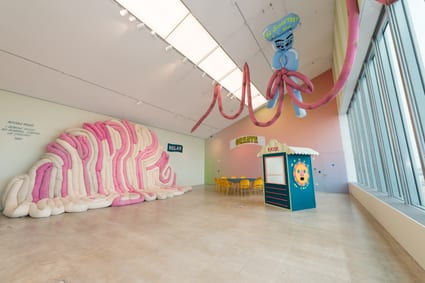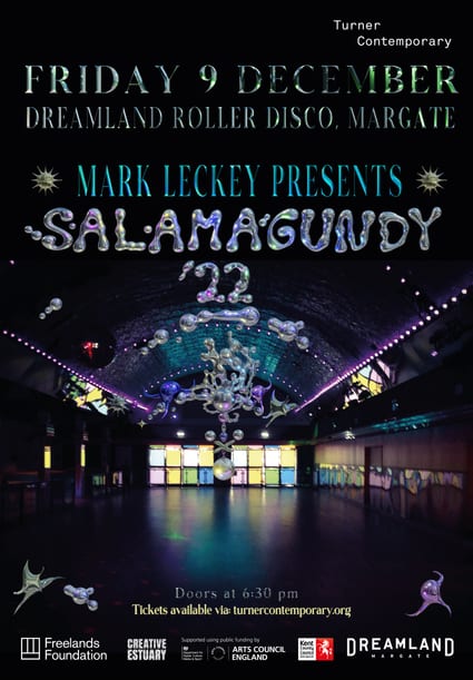 During the Emerging Producers Programme, the group worked alongside artists (including Turner Prize winning artist Mark Leckey), Turner Contemporary staff and industry professionals to help research, develop and deliver the Oh! Dreamland exhibition and workshop space in the Clore Learning Studio. This included realising significant new commissions and a public programme of live performance during the show and in the lead up, such as Salamagundy ‘22 Variety Show, a Creative Estuary Co-Commission which took place at Dreamland Roller Room in December 2022.