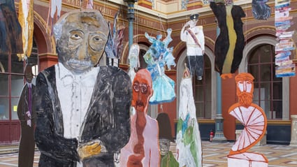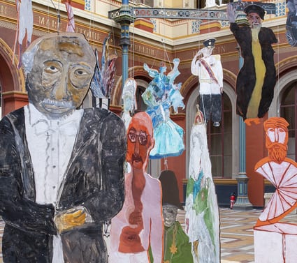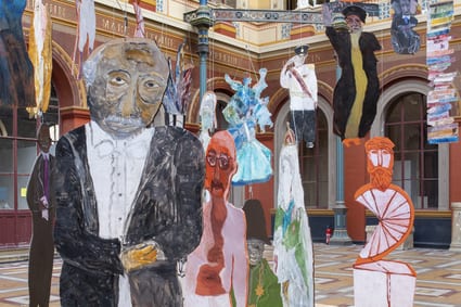 Boghiguian, an Egyptian-Canadian artist of Armenian heritage, creates large-scale installations that combine personal narrative, historical research, and political commentary. Her distinctive visual language—combining painting, drawing, collage, paper-mâché, glass, bronze, and fabric—confronts viewers with questions about colonialism, trade, migration, and ecological devastation. Her figurative work, including large-scale tableaux, is deeply connected to history and storytelling, addressing themes such as the impact of the Industrial Revolution and the climate crisis.