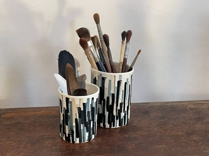 The collaboration will coincide with the launch of the Spring Exhibition — Beyond Form: Lines of Abstraction, 1950-1970, which opens at Turner Contemporary on 3 February 2024, and will focus on abstraction in a post-WWII period. The Mid-Century Modern aesthetic of the collection Rye Pottery shapes and the abstract style of the hand-painted design complement the exhibition perfectly. The surface decoration of the Breakwater collection takes its inspiration from the pebbled beaches and weathered wooden posts common to southern beaches.