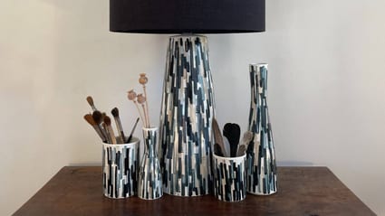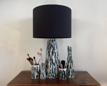 Recent creative projects include a collection of Mid-Century Modern lamp-bases developed for Soho House, a project with award-winning London pub group Darwin & Wallace, a dinner service for celebrated English Vineyard Gusbourne, and tiles for a Grand Designs build.
