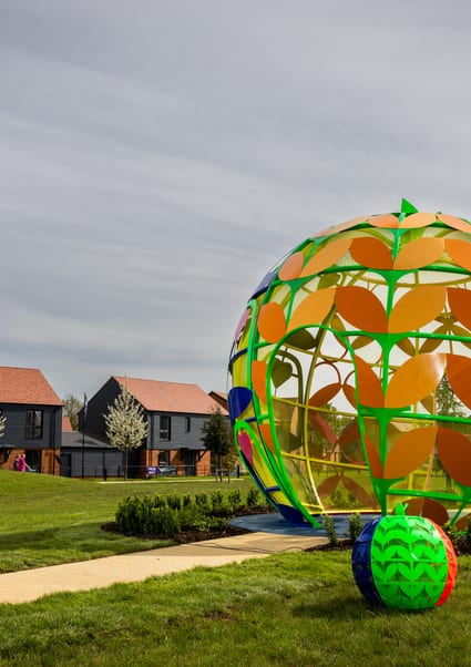 'Slices of Peace' is a public artwork by artist and designer Yinka Ilori MBE installed in Orchard Park – a new public park in Kings Hill, near West Malling in Kent.