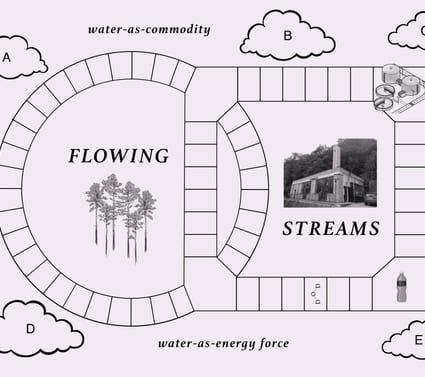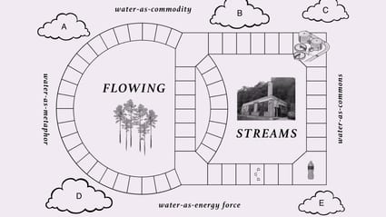 The workshop is centred around Flowing Streams, the prototype of a water-themed board game, and asking you to explore the future shapes it might take. over the course of the evening you'll be invited to co-develop, test and play a new version of the game's rule system and game play, using a board and set of icons as prompts.